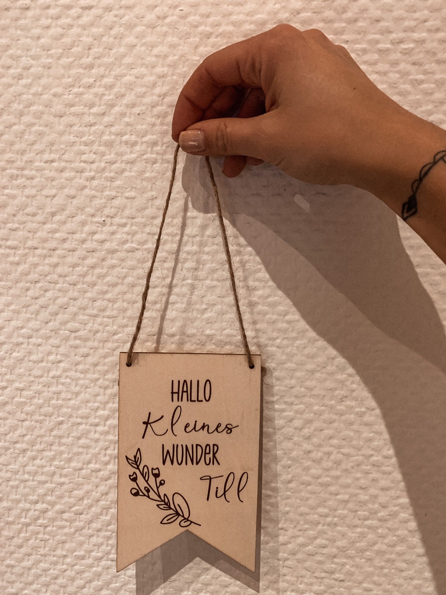 Personalisierbare Holzwimpel als Namensschild (6€) zzgl Versandkosten
